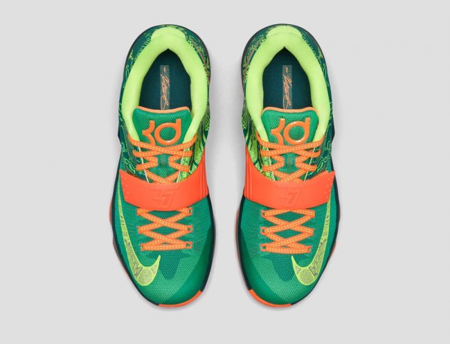 KD 系列的配色 Weatherman 登陆 KD7,该配色来源于杜兰特儿时的梦想,KD 从小就梦想着当一名气象学家,探索变化无常的天气。气象员配色首次登陆 KD 系列为 2011 年,在 KD4 四代鞋型上展现。 此番在 KD7 鞋型上的呈现,以绿色鞋面点缀橙色和荧光色细节,Posite 材质部分则呈现出气象图装饰,将于 3 月 5 日正式发售。 货号:653996-303 发售日期:3 月 5 日