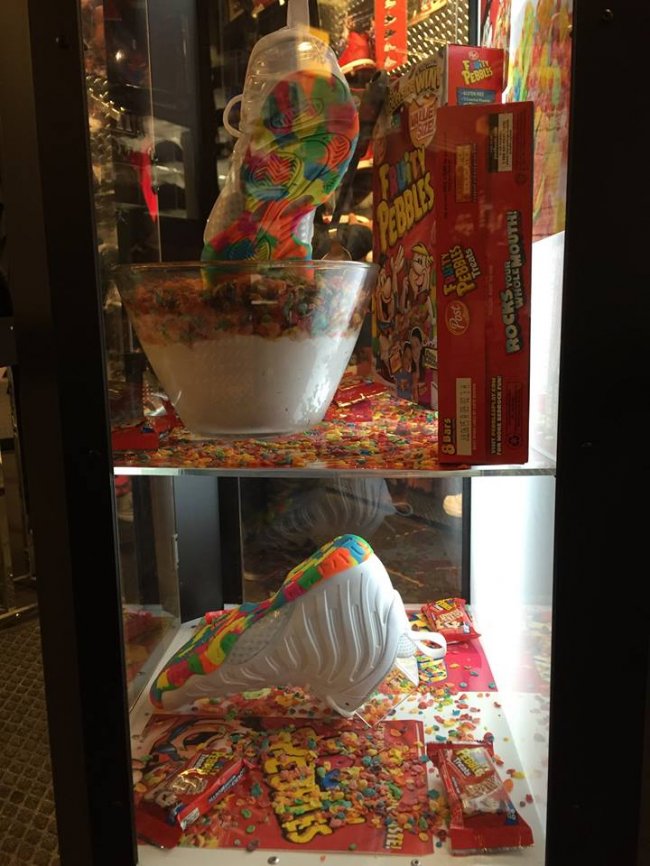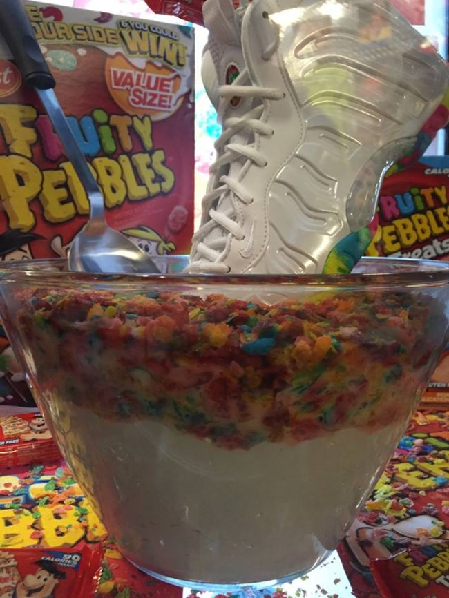 曾经在 LBJ4 和 LBJ11 上呈现的 Fruity Pebbles 糖果麦片配色在 Nike Little Posite One 儿童鞋款上亮相。 在大底上呈现出多彩斑纹,给人带来活泼俏皮的整体感受,货号为 644791-100,现已发售,发售价 $180 美元。