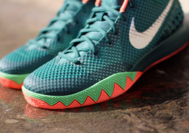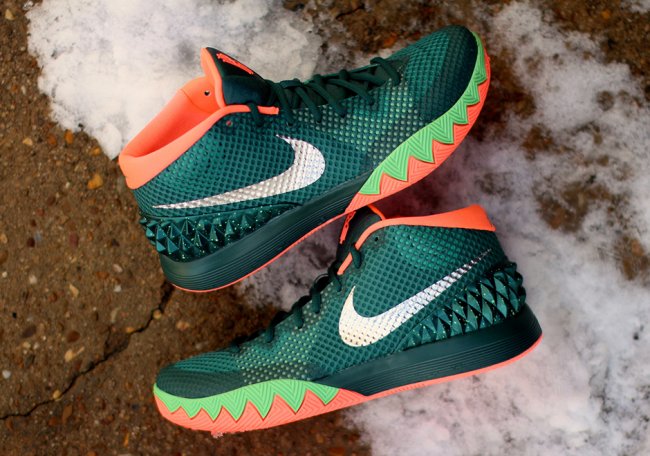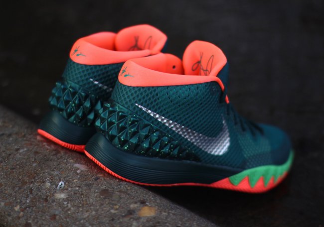 以捕蝇草为灵感来源,在 Nike Kyrie 1 鞋型上采用深绿鞋身点缀浅绿和芒果红细节,鞋身 Swoosh 则采用银色打造,脚踝处的泼墨装扮也增添了不少亮点。 鞋底凶猛的箭齿装扮则采用绿红打造,颇有捕蝇草的捕食者风范,象征了凯里欧文在场上强大的机会获取能力和得分能力。 货号:705277-313 发售日期:2 月 26 日
