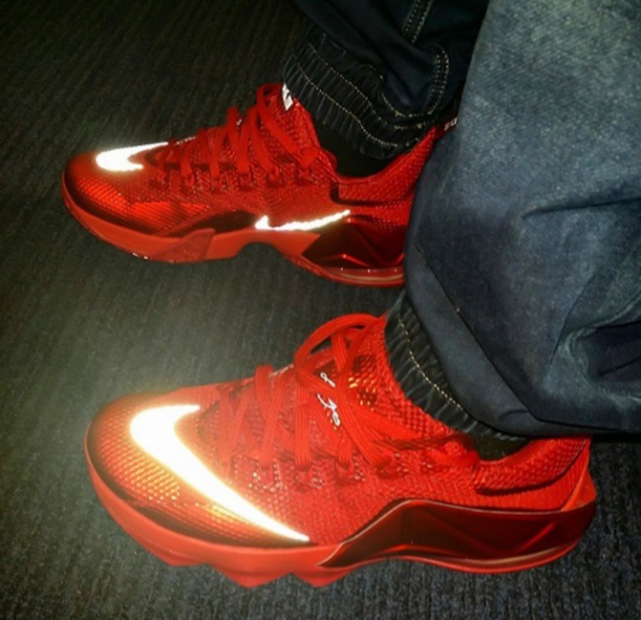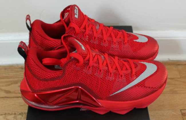詹皇亲着的纯红配色 LeBron 12 Low "Red" 即将市售,以红色透气鞋面拼接带有金属光泽的红色 Posite 材质打造,鞋身 Swoosh 和 LBJ Logo 采用银色的 3M 材质点缀,货号为 724557-616,将于近期登陆 Nike Basketball 专柜,请有兴趣的朋友关注。 相关信息: 詹姆斯上脚全红配色 LeBron 12 Low