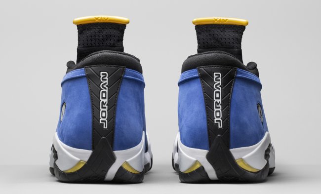 同样是致敬乔丹的母校,同样是 Air Jordan 球鞋系列经典的配色,Laney 兰尼配色来源于乔丹就读的兰尼高中,以抢眼的蓝色和黄色搭配。 Air Jordan 14 Low “Laney” 的上次发售还是在 1999 年,此番的再次回归将于 11 月份正式发售,发售价 $190 美元。 以黑色和蓝色搭配打造鞋身,搭配白色中底,细节则采用抢眼的黄色点缀,以低帮鞋型设计呈现出法拉利跑车造型和运动风范。