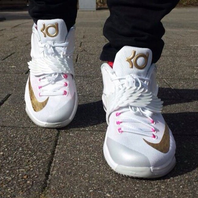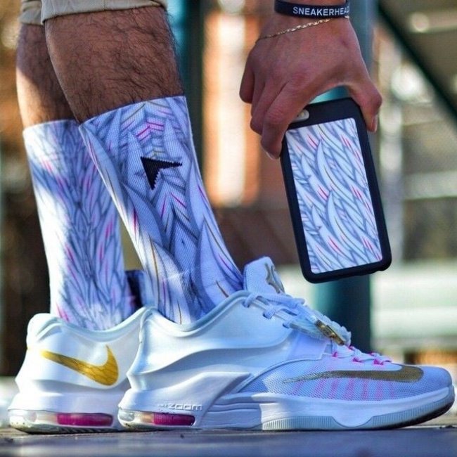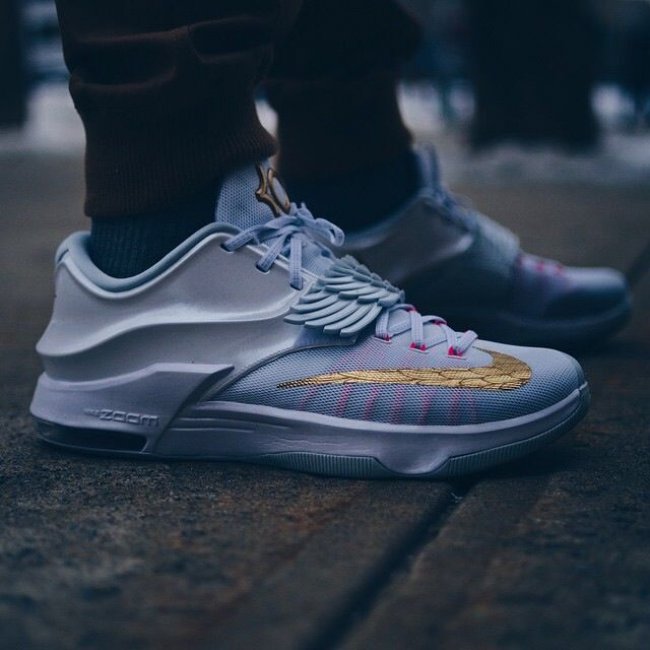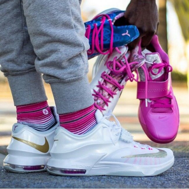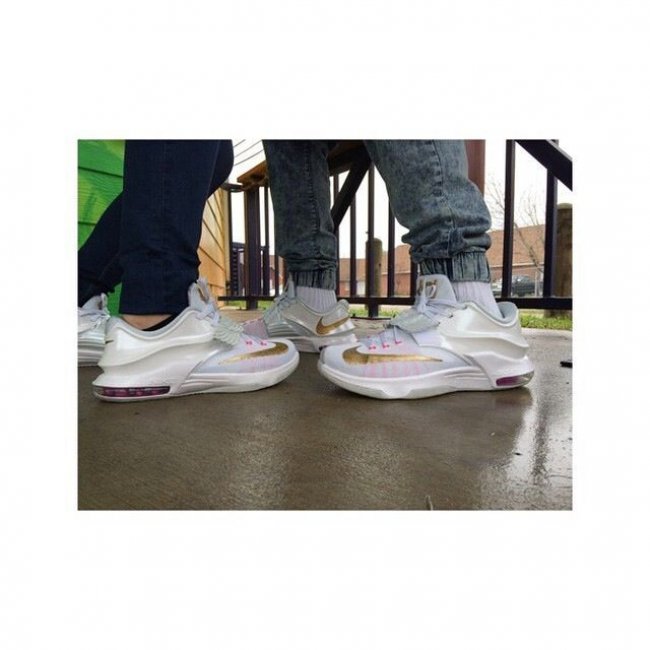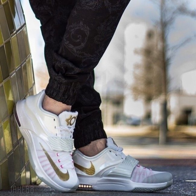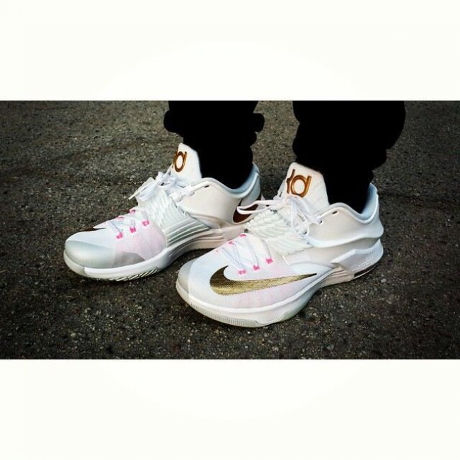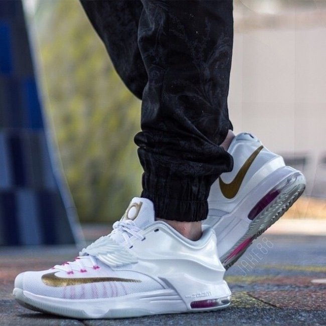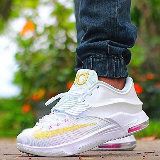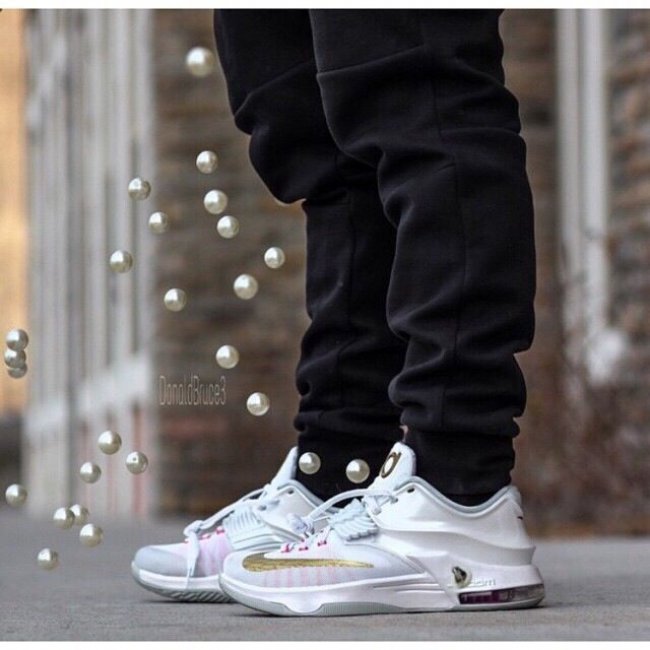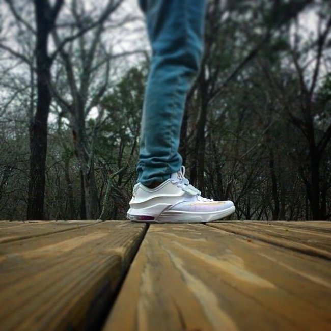 带来网友们上传的此款配色上脚实拍,提前感受 Aunt Pearl 配色在 KD7 鞋型上的完美呈现。
