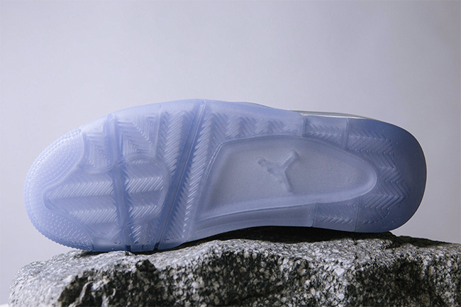 采用了本系列同主题的白色主色调,白色鞋面上呈现出灰色的镭射图案,展示了 Jordan Brand 同迈克尔乔丹的精彩历史,细节采用银灰色的 3M 反光材料打造,搭配蓝水晶大底。整体感受清爽简洁,而颇具亮点。