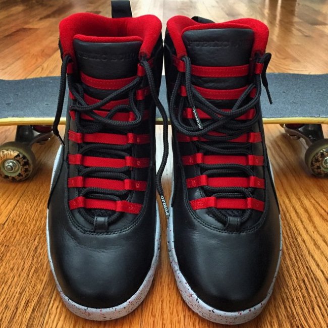Public School 同 Jordan Brand 的联名产品 Air Jordan 10 "PSNY" 曝光清晰实物照。 作为来自纽约城的潮流品牌,此番同 Air Jordan 鞋款的合作丝毫不马虎,采用黑色的优质皮革鞋面,点缀红色细节,水泥灰中底的泼墨装扮为整体烘托了十足的趣味感受。 而在鞋身细节则凸显了 PSNY 品牌形象,鞋垫、鞋舌和后跟鞋提都有所体现。