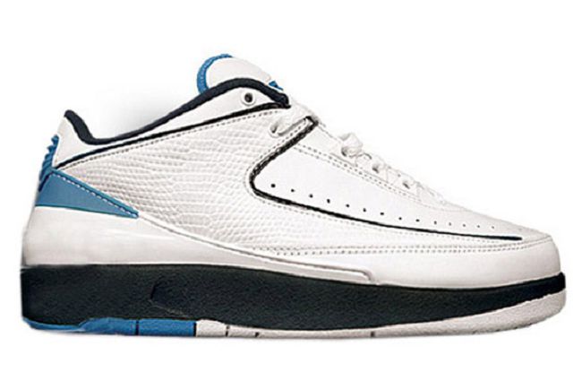 Air Jordan 2 Low 大学蓝版本可以说是整个 Air Jordan 2 球鞋生产线里面最为出彩的配色之一。鞋身采用白色皮质以及鳄鱼皮纹理打造,加上北卡蓝不多不少的星星点缀,可以说得上是夏日搭配的典范。