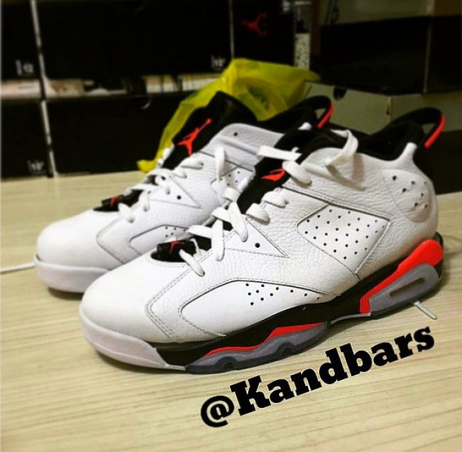 经典的白红外配色登陆 Air Jordan 6 Low 低帮鞋型,采用白色皮革鞋面点缀黑色和红外色细节,在呈现运动活力感受的同时,低帮鞋型又带来完全不同的灵巧感受。部分鞋面材质采用荔枝纹呈现,给整体效果增添了多层次感受,细节细腻,预计将于 2015 年 7 月份正式发售。