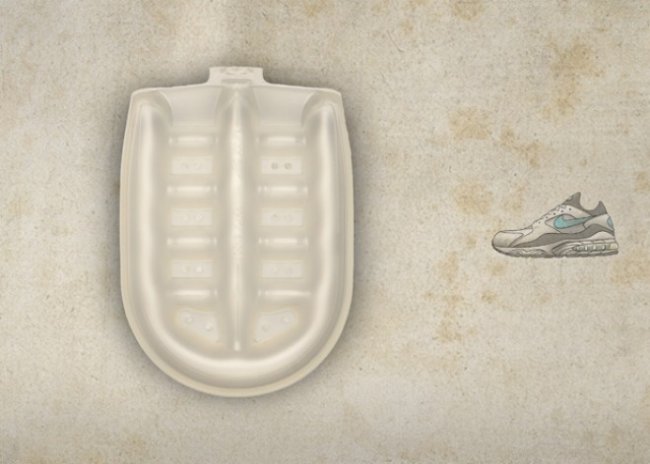 那时,Air Max 1、Air Max 180和Air Max 90都在前脚放置了Air-Sole单元。但是都被完全密封,是看不见的。随着人们对完全没有发泡材料的跑步运动鞋的要求增加,一个重大的发现应运而生。出现了被称为吹塑法的全新Air-Sole制作方法。