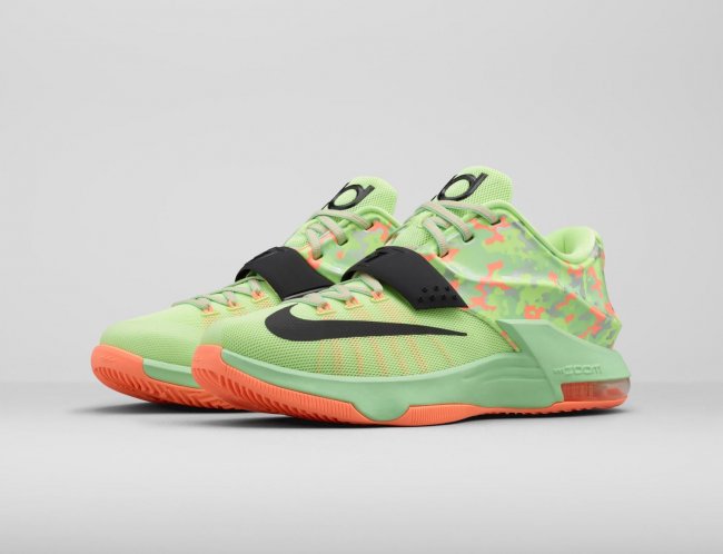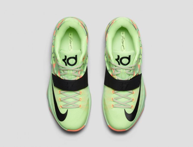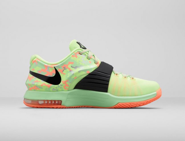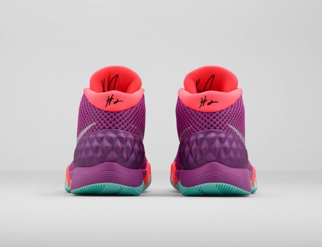 Kobe 10 "Easter" 采用熔岩红和水蓝色呈现出知更鸟蛋色彩,LeBron 12 "Easter" 采用晚霞色打造 Megafuse 搭配黑色 Posite 材质,Kyrie 1 "Easter" 则以紫色鞋身装扮红绿细节来凸显节日氛围,KD7 "Easter" 将街头涂鸦迷彩在浅色系的整体鞋身上展现。