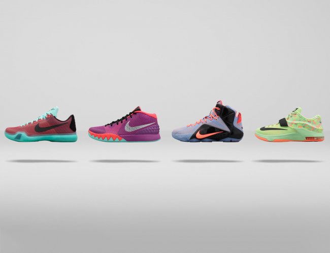 复活节将近,Nike Basketball 正式发布 Easter 系列战靴,包含 Kobe 10、KD7、Kyrie 1 和 LeBron 12 四款全新配色。