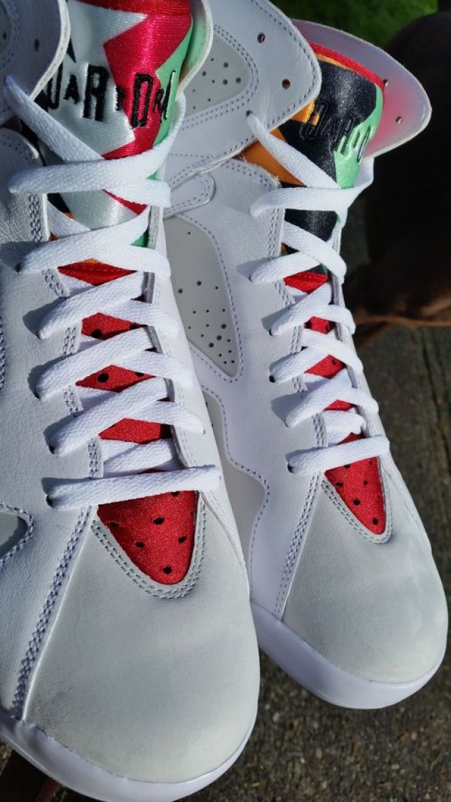 兔八哥配色 Air Jordan 7 "Hare" 将于 5 月 16 日复刻回归,继 CDP 套装之后的再次发售,以优质的皮革材质呈现出经典的 Hare 配色。 浅色鞋面搭配红色外底,多彩细节的缤纷点缀颇为抢眼,同时还附带一张兔八哥形象的复刻卡。带来实物清晰图片,提前感受一下兔八哥联名鞋款的风采。 货号:304775-125 发售日期:5 月 16 日 发售价:$190