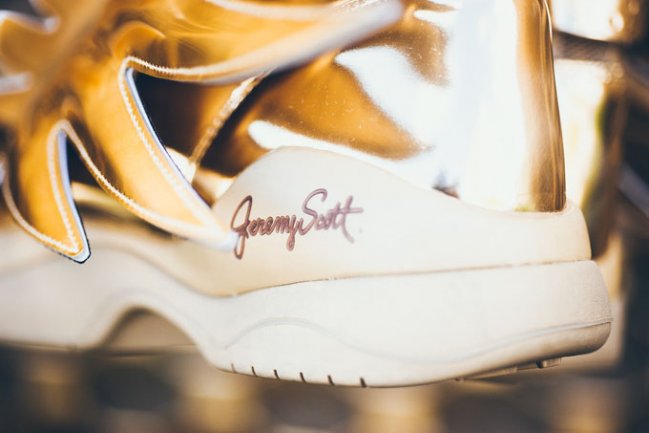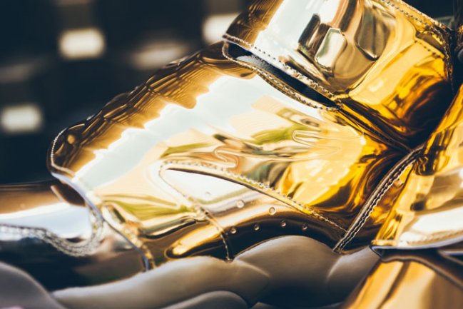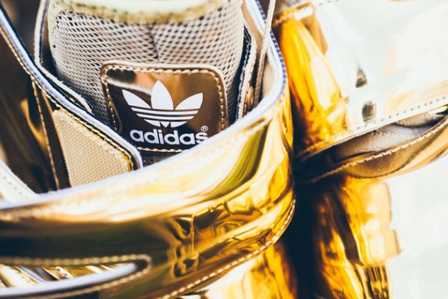 以蝙蝠侠为灵感来源的 adidas by Jeremy Scott Wings 3.0 在鬼才设计师的手下绽放出独特的时尚潮流魅力。无论是之前的纯黑版本还是眼前这款金色版本,都将华丽和高调同时尚完美结合。 同之前的暗黑风格所不同,此番的金色鞋款 adidas by Jeremy Scott Wings 3.0 以鎏金鞋面呈现,将本来就夸张抢眼的鞋型设计推向了新的高潮,视觉冲击力爆棚。