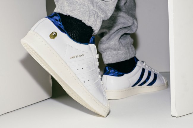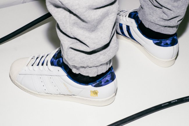 Undefeated、BAPE 和 adidas Originals 三方再次携手,继 2013 年的合作后,以 adidas Originals Superstar 80v 为基础打造两双联名鞋款,分别以黑色和白色鞋身呈现。 左右脚的外侧以烫金 UNDFTD 和 BAPE Logo 呈现,蓝黑迷彩和黑灰迷彩的装扮更添潮流感受。将于 4 月 11 日登陆 Undefeated 官网和 adidas Originals 店铺,发售价 $130 美元。