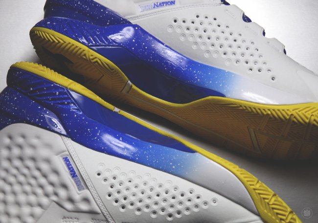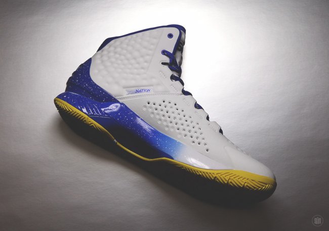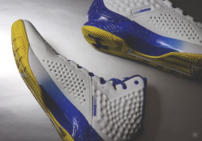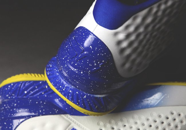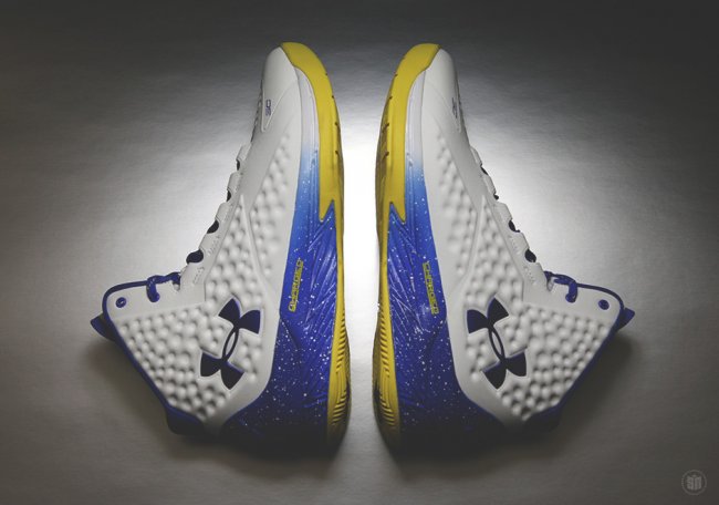 库里战靴 Under Armour Curry 1 带来全新的 Playoff 配色,为整装待发的季后赛做好一百分的准备。以勇士队标志性的白蓝黄三色打造,白色鞋面搭配蓝色中底和细节,外底的黄色呈现起到很好的托衬效果。