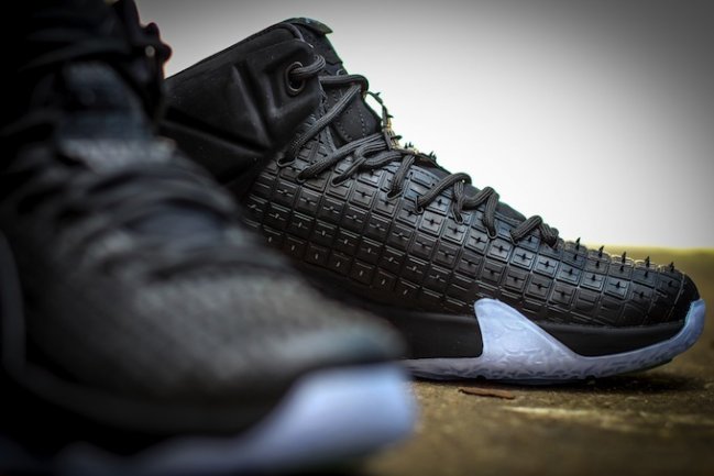 带来橡胶城配色 LeBron 12 EXT “Black Rubber City” 实物图赏,以黑色橡胶轮胎材质覆盖鞋面,细节以金属铬质点缀,搭配蓝水晶大底。在 LeBron 12 EXT 鞋型上以深色背景点缀亮色细节,休闲感受十足。 货号:744286-001 发售日期:4 月 25 日 发售价:$250