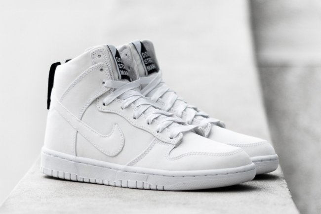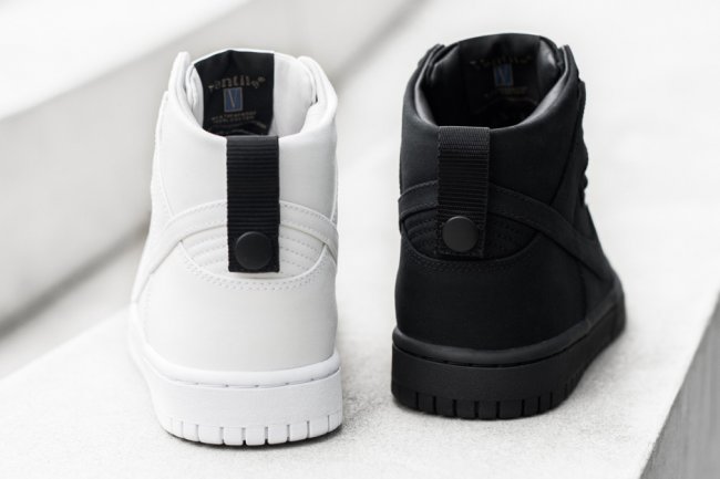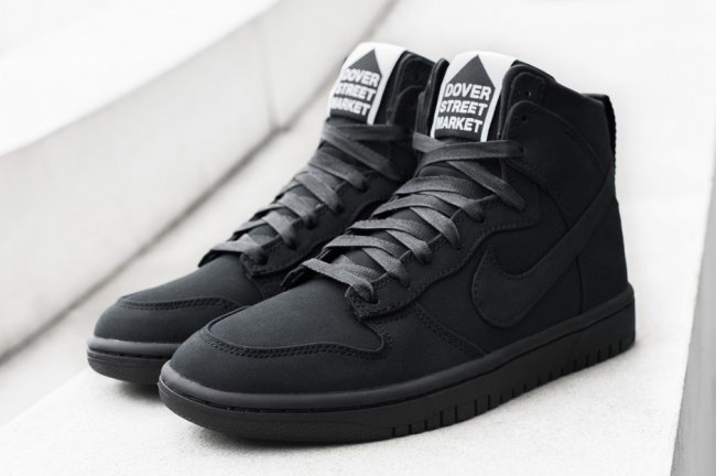 Dover Street Market 携手 Nike,通过 NikeLab 创新产品渠道打造两款联名鞋款,在 Dunk High 鞋型上选用特殊防水材质,以简约的黑白双色分别呈现。鞋舌和鞋底上的 DSM Logo 凸显 DSM 简约潮流风格,以极简设计带来品牌一贯的潮流感受,将于 5 月 7 日正式在 NikeLab 店铺发售。