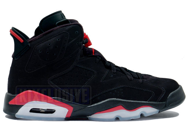 球鞋:Air Jordan 6 “黑红” 2010 年复刻版本(2010 年单独复刻版本以及 2010 年“红外线套装”都计入此)