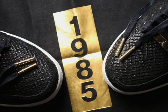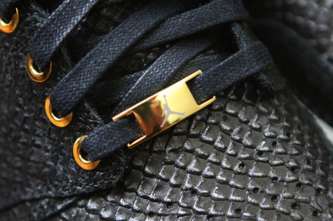 将于 6 月 20 日在全球 Jordan Brand 店铺同步发售,采用优质皮革以蛇纹呈现,凸显奢华感受的同时,采用 24K 纯金装饰物点缀,鞋舌铭牌、鞋带孔和飞翼标志都以贵金属打造,将奢华指数推向高潮。黑金鞋盒的搭配恰当好处,保持了整体风格的一致,而售价也是高达 $400 美元,折合人民币 ¥2500 元左右。