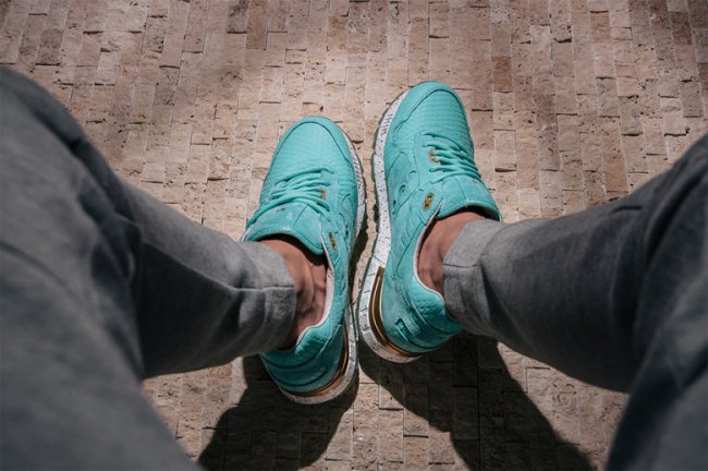 Saucony 携手 Epitome 在经典鞋型 Saucony Shadow 5000 上带来颇具精细的一款联名产品。此款 Epitome x Saucony Shadow 5000 “Righteous One” 以亚特兰大地标 Big Fish 为主题,选用鱼鳞纹皮革拼接麂皮打造鞋身。整体以水蓝色贯穿,金色细节的细腻呈现,以及泼墨中底装扮,都为整体效果带来不少的亮点。 将于 5 月 23 日正式发售。