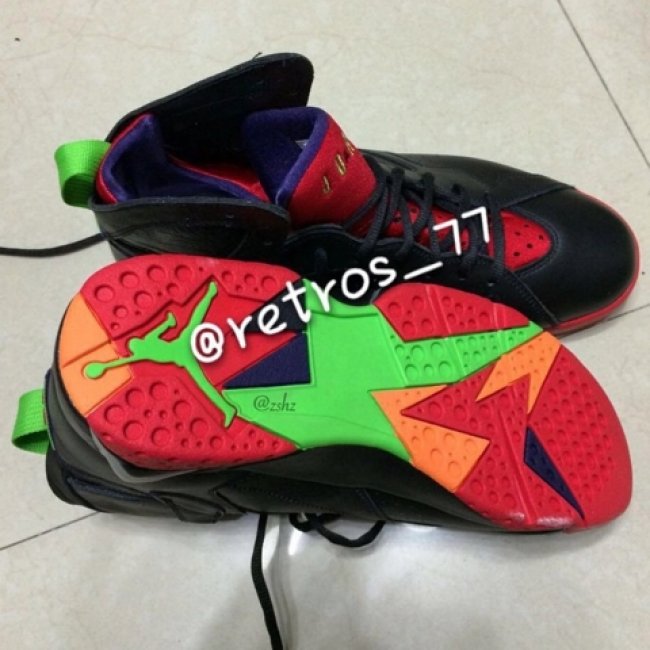 此款 Air Jordan 7 “Marvin The Martian” 以时代华纳的经典卡通形象为灵感来源,采用黑色作为主色调,点缀红色细节,营造出的黑红装扮颇为讨喜,注入紫色和绿色细节装扮,使得整体效果更具亮点,风格鲜明!