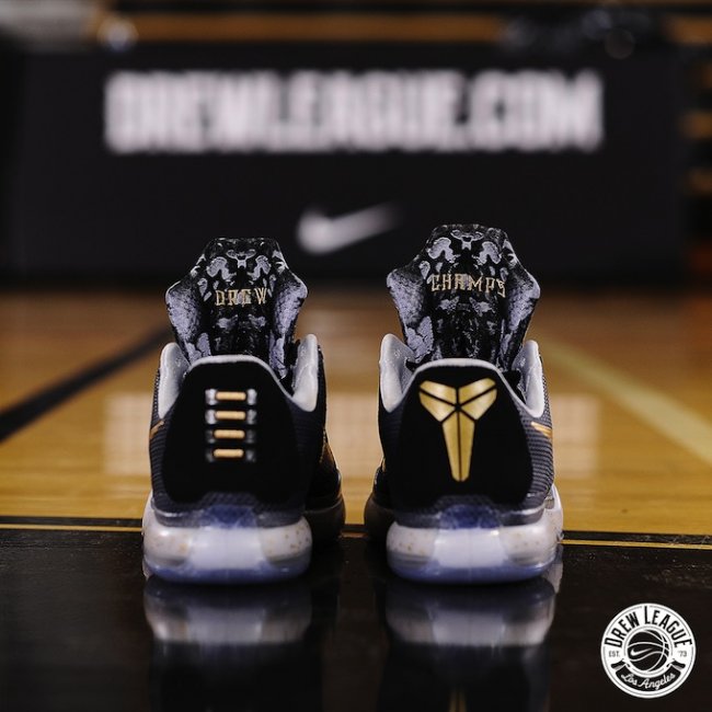 以 2014 年的 Drew League 德鲁联赛总冠军为主题,带来一款黑金装扮的 Kobe 10 NIKEiD 个性化定制鞋款。以黑色的高性能工程面料打造鞋身,金色的 Swoosh 和后跟细节颇为抢眼,冠军王者气息浓厚!