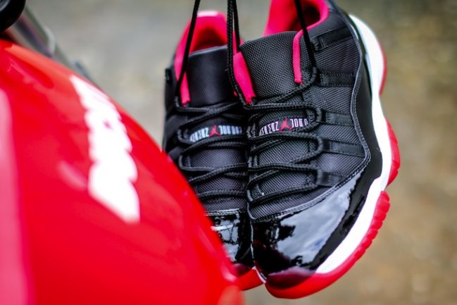 Air Jordan 11 Low “Bred” 不仅再现了熟悉的黑红 Air Jordan 11 经典装扮,内衬的红色呈现和低帮鞋型给夏季的穿着带来全新的上佳选择。