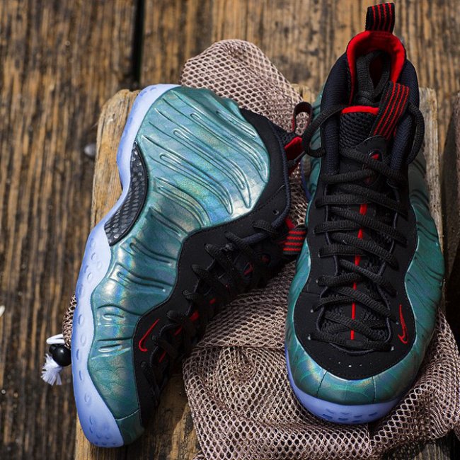 带来钓鱼喷 Nike Air Foamposite One “Gone Fishing” 全新上脚图片,以鱼鳞纹路呈现的发泡鞋面带来了独特的质感,搭配黑色鞋领和蓝水晶外底,细节的红色点缀和后跟的鱼骨 Logo 颇为抢眼。