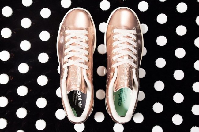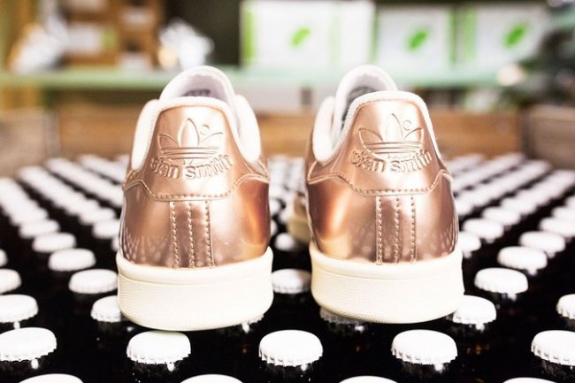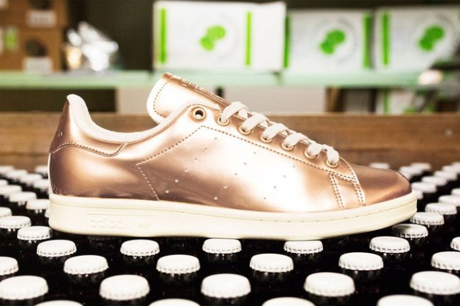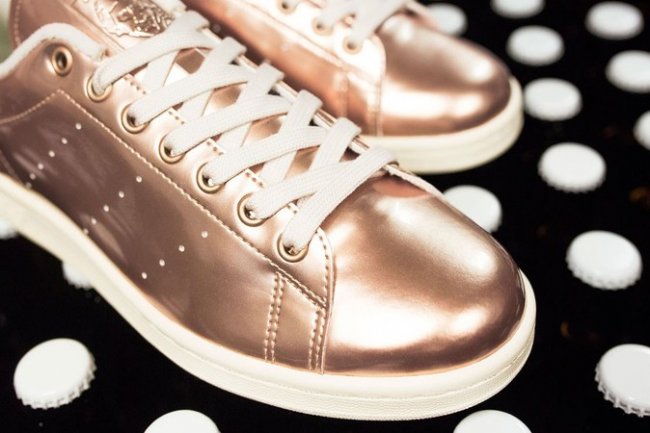 Sneakersnstuff 携手 adidas 在大热流行鞋款 Stan Smith 基础上带来一款颇具奢华感受的新色球鞋。 此款 SNS x adidas Stan Smith 以酿制啤酒所使用的铜壶为主题,以极富金属质感的铜色漆皮打造鞋身,鞋舌和后跟以轧压工艺呈现 Logo 图案。鞋垫以丰富的细节展现了小麦图案,直接契合主题。无论是远观还是近赏,都颇具魅力,视觉感受一流!
