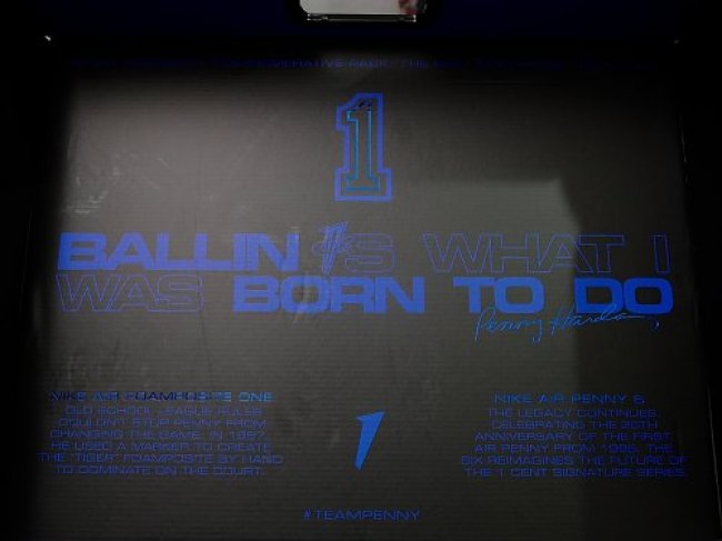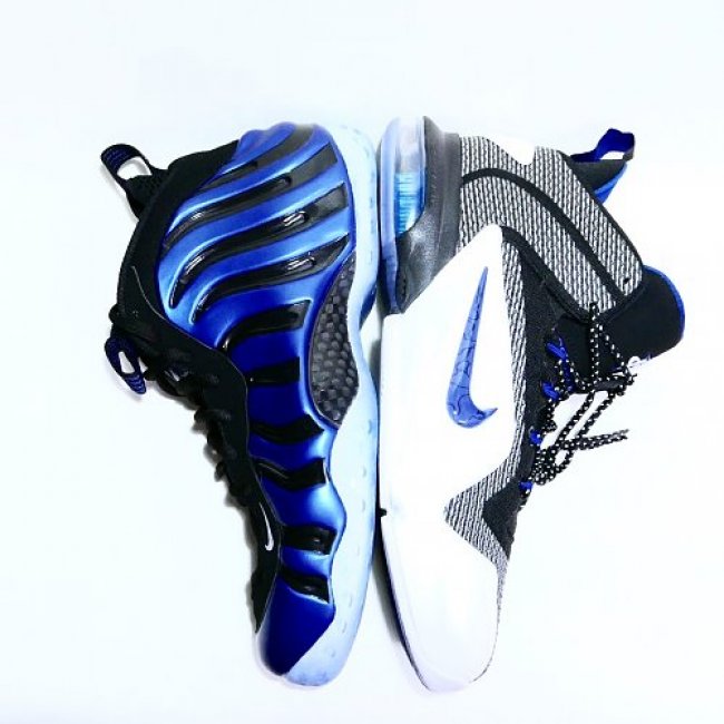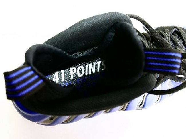 96-97 赛季,由于 NBA 联盟的规定,Penny 便士哈达威穿着的皇家蓝配色 Nike Air Foamposite One 遭到了禁止,联盟给出的原因是全蓝色的球鞋不匹配魔术队的球服,Penny 便突发奇想,在换衣间拿起马克笔,就完成了一款全新配色的设计。他使用黑色的马克笔,在 Foamposite One 发泡鞋面的凹槽填补上黑色条纹,以满足联盟 50:50 的色彩要求。
