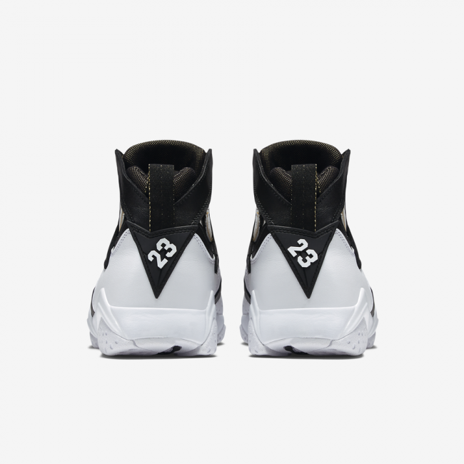 此款 Air Jordan 7 “Champagne” 香槟配色以白色皮革材质打造鞋身主体,注入黑色装扮,以黑白简约风格呈现,细节的金黄加持,带来冠军庆典风味,冠军戒指鞋带扣自然也是必备元素。