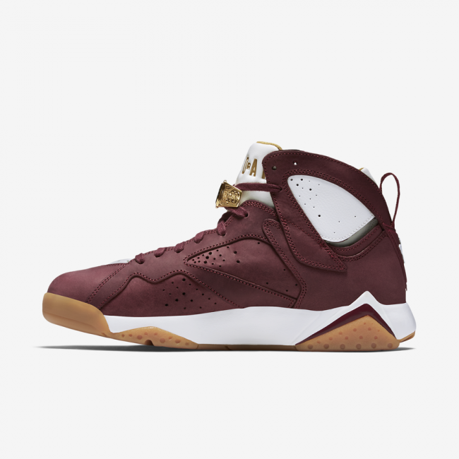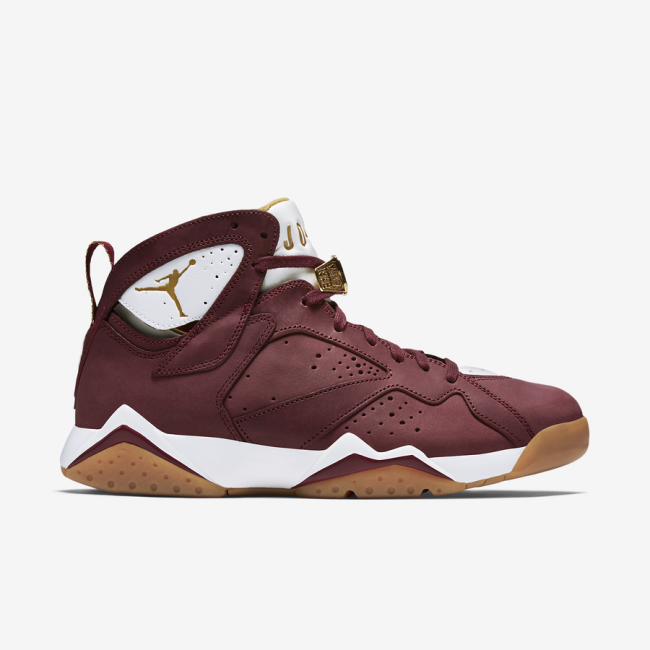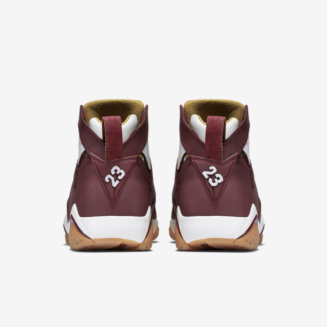 作为 Air Jordan 7 冠军套装成员,雪茄配色 Air Jordan 7 “Cigar” 以酒红装扮呈现,细节注入白色和金色带来层次感受,整体颇具质感的视觉效果以生胶大底托衬,上脚搭配定能收获不错的效果。