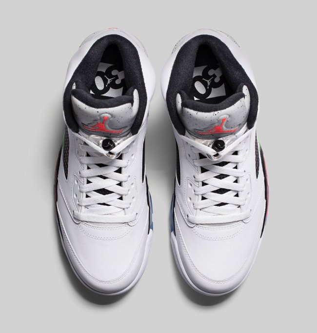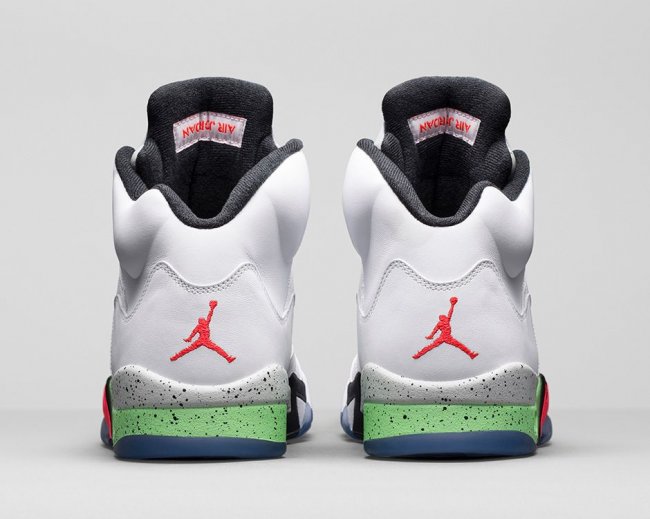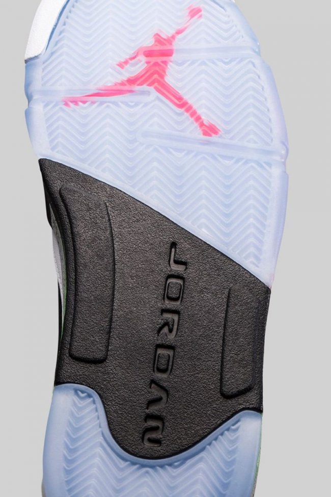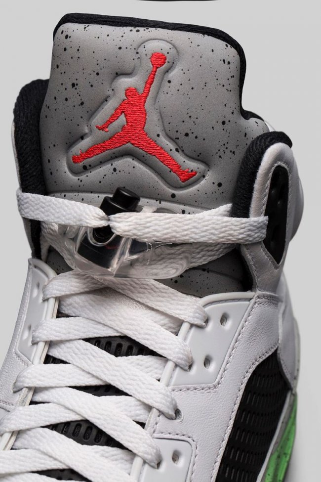 此款 Air Jordan 5 “Pro Stars” 以白色皮革鞋面为主体,注入黑色细节,水泥灰鞋舌点缀红外色 Jumpman Logo,而颇具亮点的中底渐变色装扮,以毒液绿、黑色和红外色融合,将于 6 月 6 日正式发售。