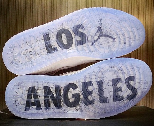 以纯白皮革鞋身搭配白色中底和蓝水晶外底,带来清爽而活力十足的整体感受。鞋舌 Jumpman Logo 和鞋帮飞翼标志采用了印压工艺呈现,后跟分别呈现了 23 和 LA 浮雕字样,水晶鞋底下透露着 Los Angeles 字样,表明了它的主题。