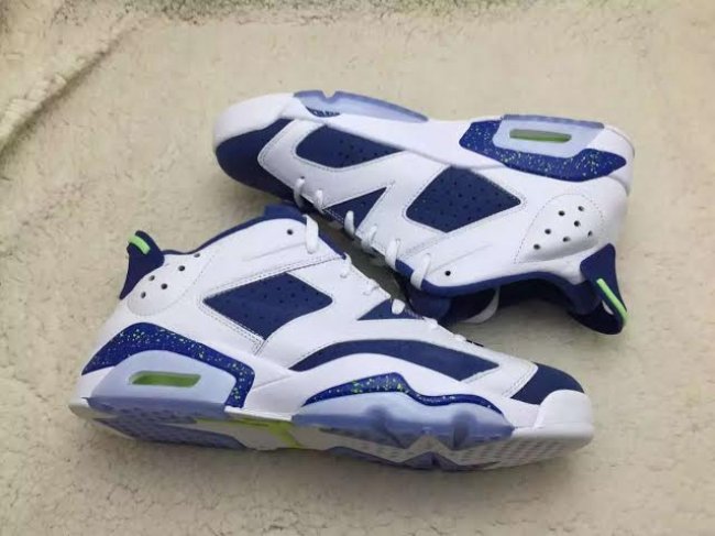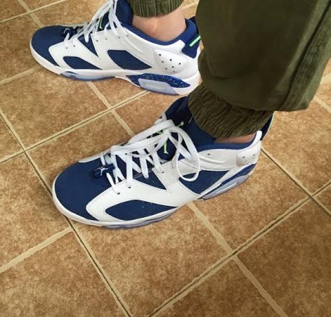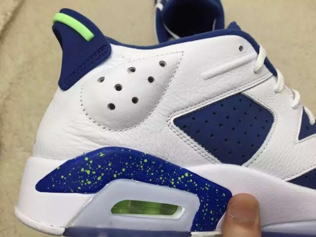 Air Jordan 6 Low 低帮鞋型带来一款撞色风格的新款配色,将在 2015 年秋季正式发售,除了 GS 女款,男款尺码也将同步上市。 此款 Air Jordan 6 Low “Ghost Green” 以白色荔枝皮革拼接蓝色牛巴革打造鞋身,撞色的反差搭配带来十足的视觉冲击力,细节以幽灵绿点缀。整体效果颇为和谐,对于喜欢亮眼效果的球鞋爱好者,是一款值得关注的配色! 货号:304401-106 发售日期:9 月 19 日