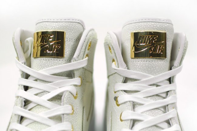 以白色的整体背景点缀金色细节,同黑色版本的皮革纹理不同,珍珠鱼皮的浅色鞋面带来纯净和质感体验,而贵金属味道浓厚的 24K 镀金细节呈现,以华丽而明亮的形象示人,让人耳目一新。同前作相比,整体色调更加亮丽,适合轻装上阵的搭配。