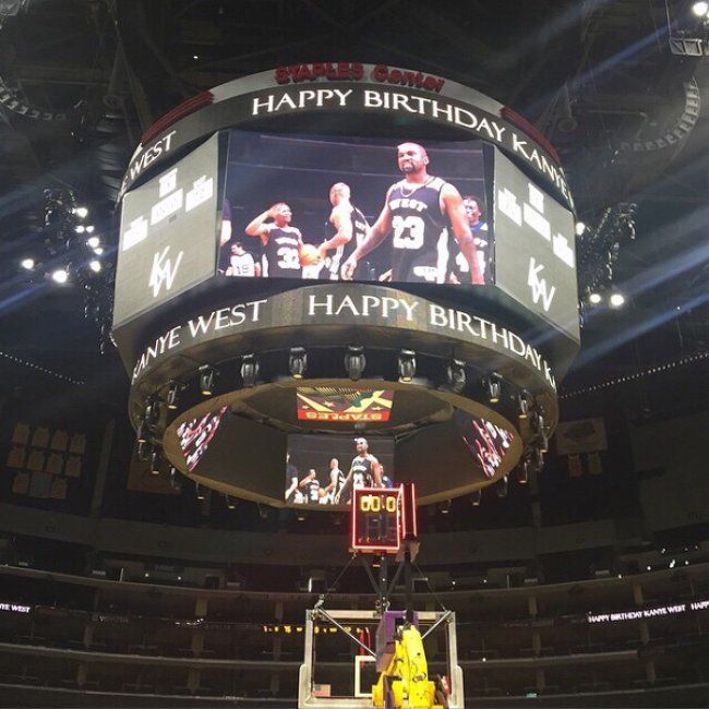 昨天 Kanye West 迎来 38 岁生日,卡戴珊叫上侃爷的一帮好友,租下斯坦普斯球场,为侃爷带来了一场特别的生日篮球赛。 众人分别穿着了 WEST 西部和 EAST 东部球衣,而侃爷本人则身披 WEST 战袍,上脚了 adidas Yeezy 750 Boost,这双采用 Boost 大底的高帮球鞋在球场上的表现如何?各位也不妨一试!