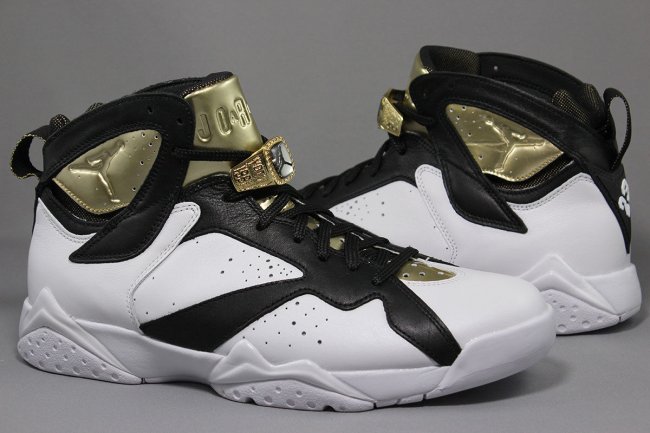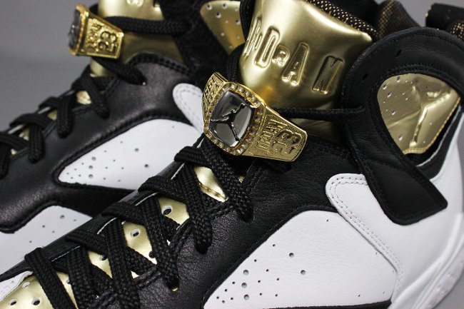 致敬 Michael Jordan 的第二个总冠军戒指,Jordan Brand 继去年 Air Jordan 6 冠军套装后,在 Air Jordan 7 鞋型上带来同样的冠军纪念套装,同样以庆祝场面中必不可少的雪茄和香槟为主题。