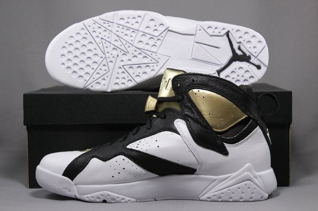 此款 Air Jordan 7 “Champagne” 香槟配色以白色皮革材质打造鞋身主体,注入黑色装扮,以黑白简约风格呈现,细节的金黄加持,带来冠军庆典风味,冠军戒指鞋带扣自然也是必备元素。