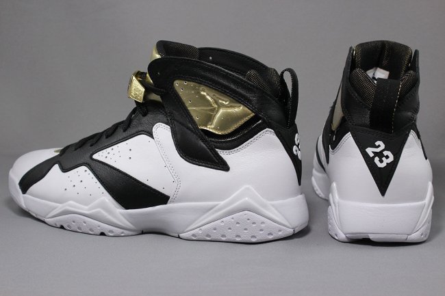 带来 Air Jordan 7 “Celebration Collection” 冠军套装两款配色的清晰图赏,一款以白黑金装扮呈现,另外一款雪茄配色则以酒红牛巴革鞋身搭配生胶大底。两双鞋款都以白金搭配营造出冠军庆功氛围,冠军戒指是必不可少的重点元素。