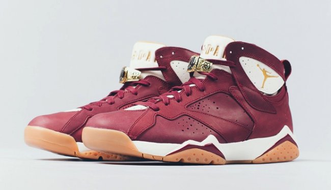 致敬 MJ 的两连冠,在 Air Jordan 7 鞋型上带来同样的冠军套装,依然以冠军庆典上必不可少的雪茄和香槟为主题,带来两款不同风格,而冠军氛围浓厚的精品鞋款。 雪茄配色以酒红麂皮打造主体鞋身,辅以生胶大底,装扮白金细节;香槟配色则以白黑鞋身点缀金色细节,鞋帮 Jumpman Logo 和鞋舌 JORDAN 字样以香槟瓶上的印压方式呈现。 将于 6 月 20 日正式发售,两款配色的售价均为 $250 美元。