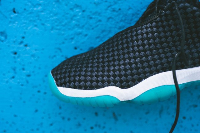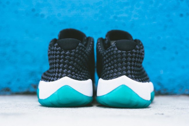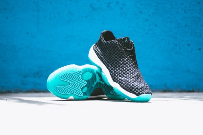 以黑色织物鞋面搭配白色中底和水蓝色水晶外底,Jordan Future Low 低帮鞋型带来一款全新配色。以简洁的黑白装扮,辅以水蓝外底托衬,简单明了潮流风味十足。虽仅发售 GS 女款尺码,但最大为 US9.5。