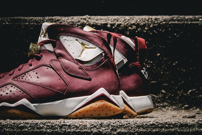 以 MJ 的两连冠战靴 Air Jordan 7 为蓝本,Jordan Brand 在今年继续以冠军套装的形式带来一组精品球鞋。 同样以冠军庆典必不可少的雪茄和香槟为主题,在 Air Jordan 7 鞋型上,以酒红鞋面搭配生胶大底带来雪茄氛围,另外一款香槟配色则以黑白搭配辅以金黄细节。 冠军戒指装饰的注入更显亮点,将于 6 月 20 日正式发售。