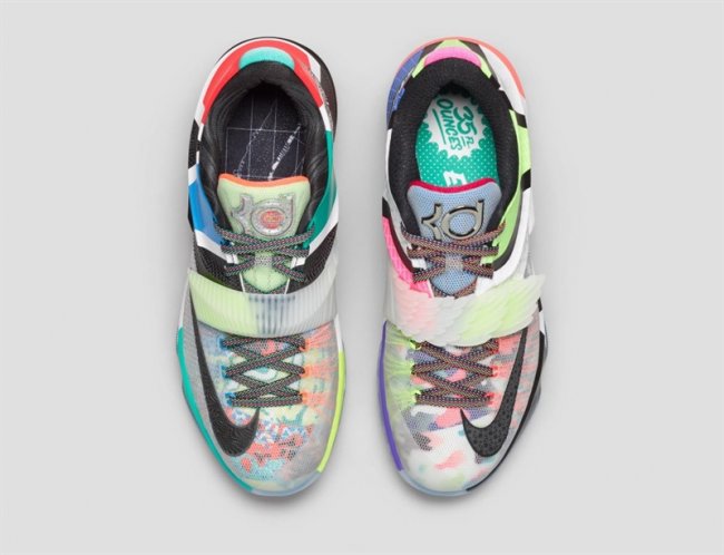 耐克设计师独具匠心的将杜兰特第七双签名鞋的18款配色元素融入到KD7 What The的设计中。