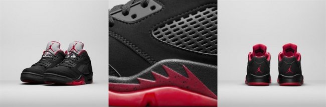 Air Jordan V Low,以二战时期战斗机为设计灵感,运用了与Air Jordan IV相似的金属配色主题,并搭配透明鞋底,向飞翔的理念致敬。