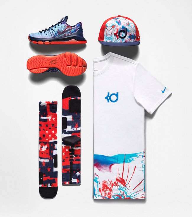 临近今年的美国国庆日,Nike Basketball 正式发布了 4th of July 系列,致敬美国独立日。在 Kobe 10、LeBorn 12、Kyrie 1 以及杜兰特最新的 KD8 上呈现出美国国家配色,以蓝色和红色的搭配为基调,细节的精雕细琢则各有特色,将于 6 月 27 日正式发售。