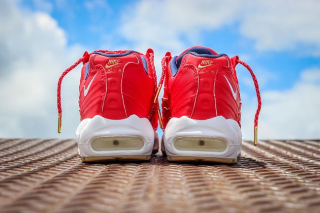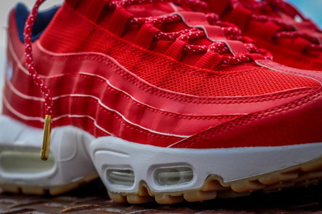 NSW 将 Air Max 家族经典的 Air Max 95 鞋型带回到我们面前,以美国独立日为契机,呈现出一款 USA 美国国家配色。 此款 Nike Air Max 95 “USA" 以红色鞋面搭配海军蓝内衬,搭配白色中底和生胶外底,经典鞋型的抢眼呈现,运动活力十足。细节的金色点缀和泼墨装扮则更添亮点,远观和近赏都颇值得品味。