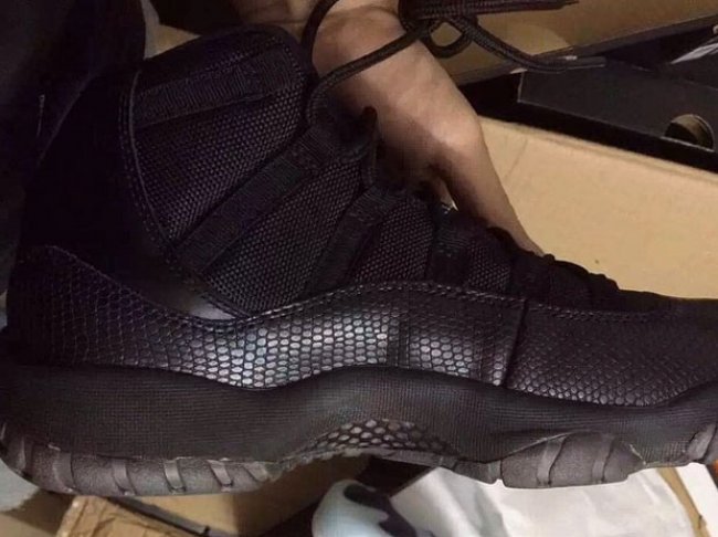 一款全新的 Air Jordan 11 “Black Snakeskin” 亮相网络,在经典的 Air Jordan 11 鞋身上采用黑色贯穿,特别之处在于选用蛇纹材质皮革替换了常见的漆皮,鞋帮上的 Jumpman Logo 刺绣以金黄色呈现,后跟和鞋舌上的细节则以白色点缀。