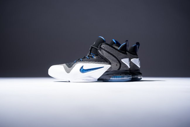 为了满足 NBA 联盟对于球鞋配色的要求,Penny 在换衣间使用马克笔,在蓝色的发泡球鞋上增加了黑色条纹涂装,让它看起来同魔术队球服颇具契合。此番 Nike Sportswear 将这款球鞋通过官方渠道发售,旨在致敬这一经典的妙笔生花,鞋身以黑蓝条纹相间,以虎纹装扮呈现,而魔术队气息浓厚,套装包装更是细节精美,Penny 的忠实粉丝不要错过!