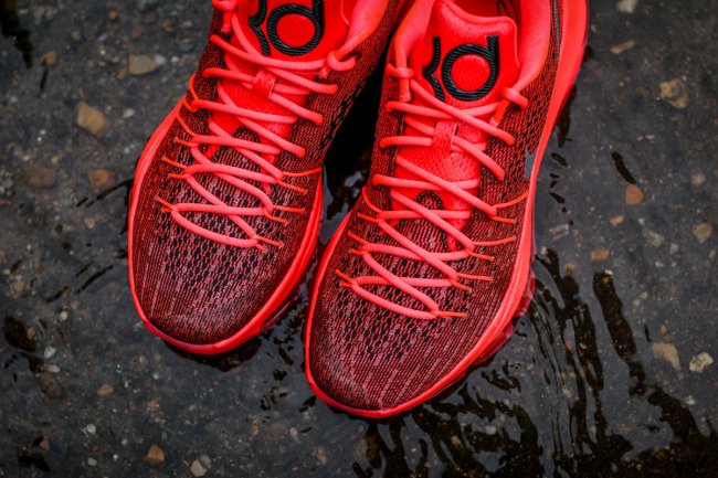 作为 Nike KD8 的领头配色,KD8 “V-8” 以红色基调点缀黑色细节,并无可以的夸张,Flyweave 编织鞋面以黑红相间带来野性感受,红色鞋舌注入黑色 KD Logo,搭配红色大底,点缀银灰 Swoosh,战斗感迎面而生。