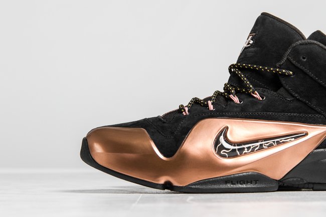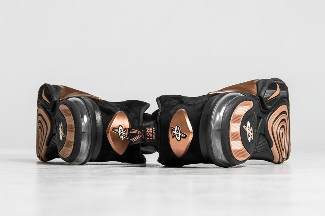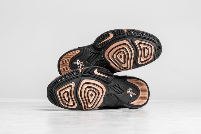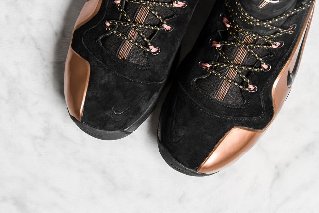 Penny 便士哈达威的第六款签名战靴 Air Penny 6 迎来一款黑金配色的发售,此款 Nike Air Penny 6 “Copper” 以黑色和铜色呈现,带来十足的王者风范。黑色麂皮鞋面搭配铜色的 Posite 材质,1 Cent Logo 和 Nike Flight Logo 带来熟悉的复古感受。