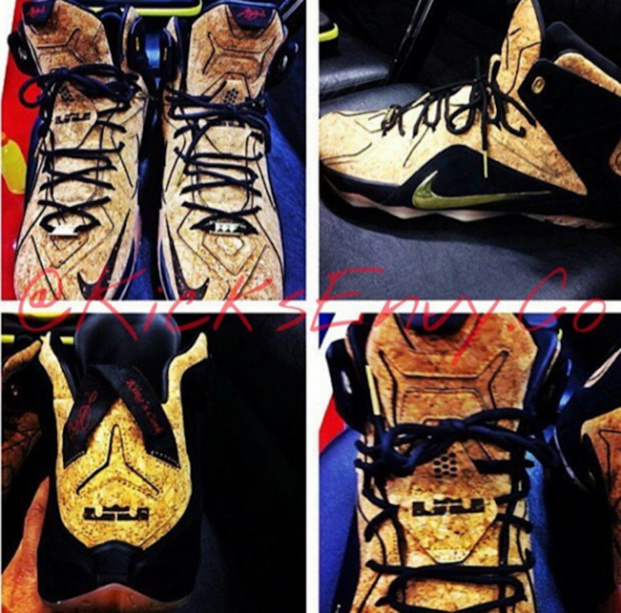 Cork 软木塞配色在 LeBron 10 EXT 鞋型上的大获全胜,使其成为了 LeBron 系列鞋款的标志性配色和标配。此番在 LeBron 12 EXT 上的呈现以软木塞材质为主体,辅以黑色的 Posite 材质,细节的金黄装扮凸显王者气息。